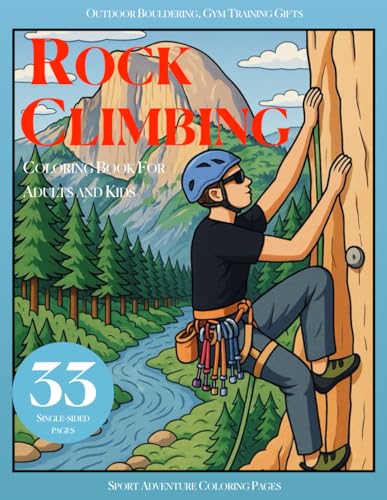 「Rock Climbing Coloring Book」は、大人と子供向けのロッククライミングをテーマにした塗り絵本です。ボルダリングやジムトレーニング、冒険的なシーンを楽しみながらリラックスできます。