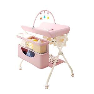 木製おむつ交換台は、大容量で収納スペースも豊富。キャスター付きで移動がスムーズです。安全なデザインで赤ちゃんのお世話を快適にサポートします。