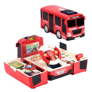 SKISUNO 変形スクールバスおもちゃ ハンドル操作ライト点灯とクラクション音付き 慣性バスモデル 幼児教育向け乗り物 バッテリーなし