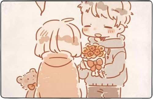 アニメカップルイラストカーペットは、かわいいキャラクターがデザインされたインテリアアイテムです。柔らかい触り心地で、自宅やオフィスにぴったり。カラフルなデザインは、部屋の雰囲気を明るくします。