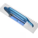 Brfveobの大型ロング角歯モルタルスクレーパーは、大判タイル張り専用の工具で、セメント掻き取りや溝切りに適しています。12mmの方齒とブルーの木柄が特徴で、価格は25.99元です。
