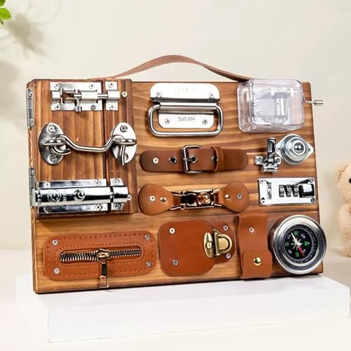 MORLU モンテッソーリ 知育玩具付きビジーボード 微細運動トレーニング 指先の知育 早期開発 男の子 女の子 プレゼント木ボタン 時計 靴紐結び 木琴 学習子供用木製ビジーボード学習アクティビ子供用 入園祝い (コンパスビジーボード)の高価買取ITEM
