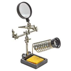 KITCHENKARATLYの多機能はんだ付け工具は、拡大鏡付きで精密基板作業をサポート。クリップ機能で部品を固定し、電子製品の修理に最適な補助具です。