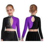 [renvena] 子供用 女の子向け きらきらする ジャズ ラテンダンス用 短めのトップ カラーブロック リリカルバレエ用 ダンスウェア フィギュアスケート用 シャツ ロイヤルブルー 6の高価買取