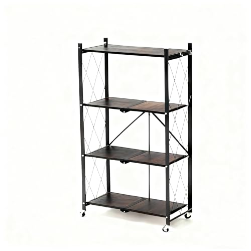LYZMHA折りたたみラックは、大容量の4段収納で、キャスター付きの木製棚板が特徴。キッチンやリビング、書斎で多用途に活躍します。簡単に折り畳めて便利です。
