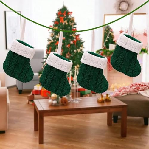 クリスマス靴下4枚セット。サイズ11cm×7cm、グリーン。クリスマスツリーや壁、玄関、暖炉の飾りにも最適。ギフトバッグとしてお菓子等のプレゼントにも利用可能。