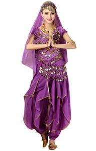 [Kstyle cos] ハロウィン コスプレ アラジン ジャスミン 衣装 ベリーダンス 大人 セット ダンス イベント 二次会 パーティー 仮装 民族 (パープル, XL)