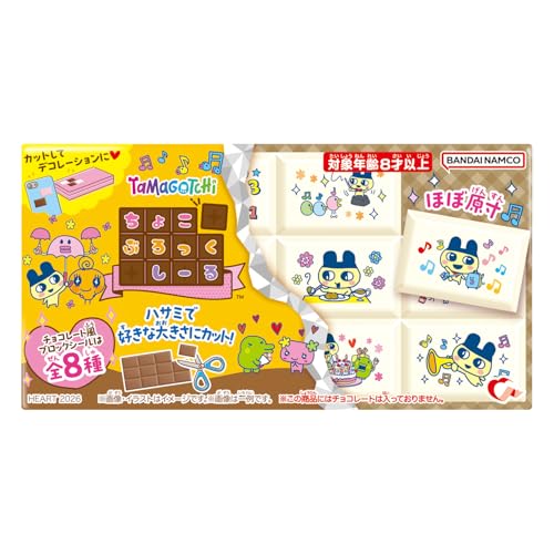 ハートのちょこぶろっくしーるたまごっち、アップルソーダ味のガムが楽しめる食玩です。BOX販売で8個セット。かわいいデザインと美味しい味が魅力です。