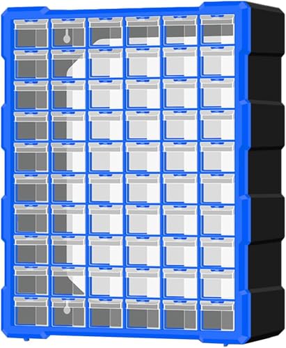 パーツケースは、電子部品や小物を整理するのに最適な引き出し式収納ボックスです。60段の仕切り付きで、サイズは38*16*46.8CM、壁掛け可能。ブルーのプラスチック製で、子供のおもちゃや文房具も収納できます。