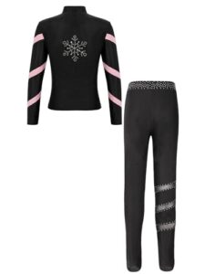 [Sywiyi] 子供用の女の子向けフィギュアスケートウェア キラキラのラインストーン付き レギンス付きのアイススケートジャケットセット 体操用トラックスーツ ピンク 15-16歳