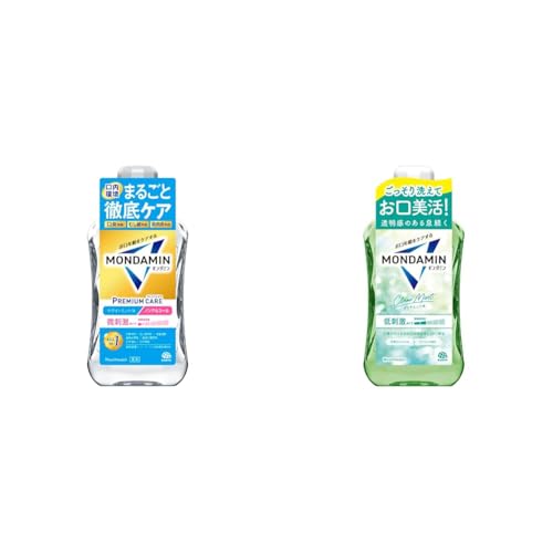 モンダミン プレミアムケア ホワイトミントとクリアミントのセット。ノンアルコールで低刺激、口臭ケアやオーラルケアに最適な医薬部外品の洗口液。各1000mL。