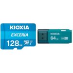 KIOXIAのmicroSD 128GBはUHS-I Class10で最大読出速度100MB/s、Nintendo Switch動作確認済。USBフラッシュメモリ64GBはUSB3.2 Gen1対応、日本製で国内サポートとメーカー保証5年付き。