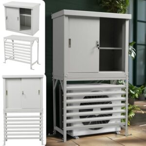 LZ LEISURE ZONE エアコン室外機カバー アルミ + 収納庫 幅90cm 物置 収納庫は分けて使える 大型 室外機上 棚 空間を有効活用 可動棚付属 室外機用 耐久性 遮光 日除け おしゃれ 室外機カバー収納 防錆・防風・防盗に強い! 鍵付き 目隠し ベランダ 庭 屋外 雪 除け 93*45*161cm (Type1)