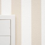 壁紙屋本舗の生のり付きクロス、ストライプデザインのベージュ色です。日本製でサンゲツ製、サイズは10m。替刃付きで、受注生産品のためキャンセル不可。