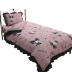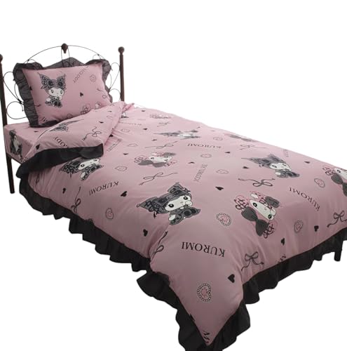 tangchengのクロミ・マイメロディの真夜中のメロクロデザイン布団カバー3点セット。シングルサイズで、掛布団カバー、シーツ、枕カバーが含まれています。ボリュームフリル付きで、可愛らしいインテリアに最適です。
