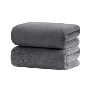 Graceaier バスタオル ふわふわ ホテル仕様 大判 瞬間吸水 70*140cm 速乾 耐久 サロン ジム サウナ バス用品 業務用 (ダークグレー, 2枚組/バスタオル)