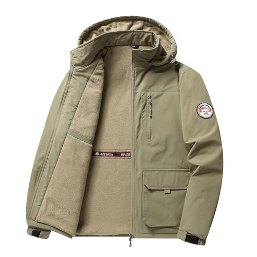 [Manatsulife] ジャケット ポーラー フリース メンズ フルジップジャケット 防寒 暖かい 厚手 冬服 フード付き 裏ボア 撥水 防風 登山 柔らかい アウトドア カジュアル 秋 冬 WT8366 (JP, アルファベット, M, カーキ) 高価買取中