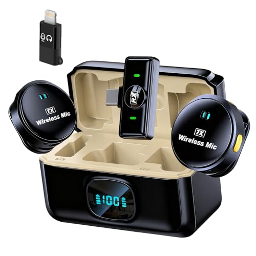 このワイヤレスピンマイクは、iPhone/iPad/Android/PC対応で、2人同時使用が可能です。100mの伝送距離、30時間の連続使用ができ、音画同期やリバーブ機能も搭載。クリップ式で軽量、充電ケース付き。