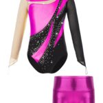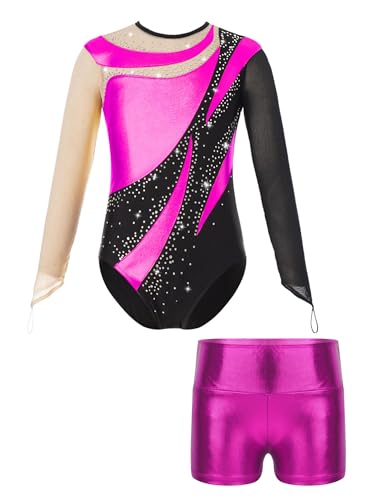 子供用女の子向けの長袖バレエレオタードとダンスショーツのセット。体操やフィギュアスケートパフォーマンスに最適なデザインで、動きやすさと美しさを兼ね備えたコスチュームです。