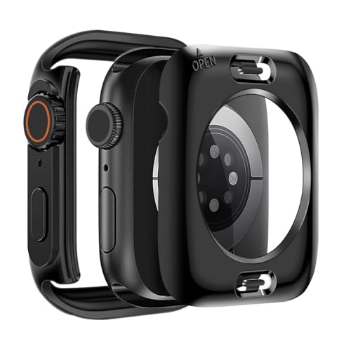 YUGYUG 対応 Apple Watch ケース 40mm 41mm 42mm 44mm 45mm 46mm Apple Watch カバー PC素材 数秒でUltra風一体型 防水 IP68 360ど度 2 in 1 前後の保護 日本旭硝子材 二重構造 アップルウォッチ カバー 全面保護 強化ガラス キズ防止(Series SE3/SE2/SE/6/5/4 40mm,ブラック)の製品情報