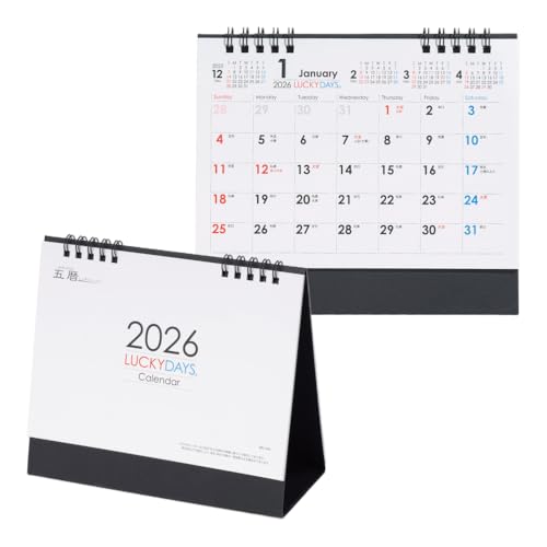ムトウユニパック MU-103 LUCKY DAYS 2026年卓上カレンダーは、シンプルで実用的なデザイン。サイズは160×180mmで、五暦対応の5ヶ月カレンダーです。日常使いや贈り物に最適です。