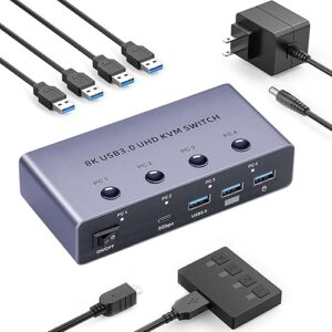 BLUPOW 8K@60Hz KVMスイッチ 4入力1出力 USBキーボード・マウス・モニターを共有 HDMI パソコン切替器(PC4台用) 4K@120hz HDCP2.3対応 手元スイッチ/USBケーブル付き VA580N