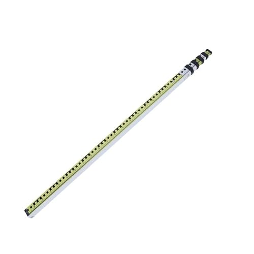 NODIBROのアルミスタッフは、軽量アルミ合金製で、5mの伸縮が可能。水準器付きで、測量や土木、建築に最適。イエロー/ホワイトの目盛付定規デザインで、現場記録写真にも使えます。