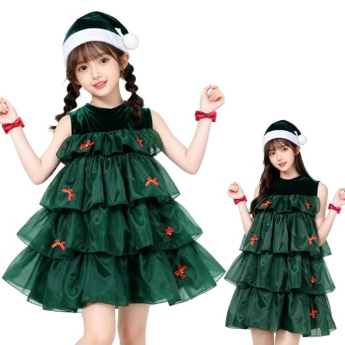 クリスマスツリーをテーマにしたセクシーで可愛いコスプレ4点セット。スカート、帽子、パンツ、バンドが含まれ、パーティーやイベント用に最適です。サンタコスプレとしても楽しめます。