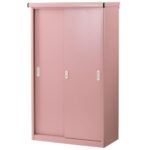/ 物置 屋外 大型 幅92.7×奥行50.4×高さ155cm 屋外倉庫 縦仕切り 収納庫 鍵付き スチール 家庭用収納庫 総耐荷重80kg モーヴピンク