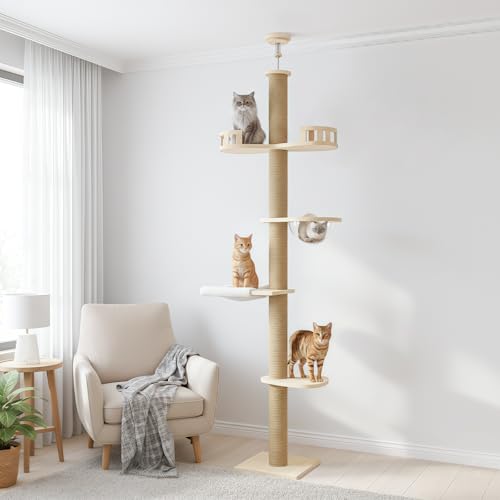 PAWZ Road 猫 爪研ぎ 麻 爪研ぎポール 縦型 かわいい 観葉植物 お花テーマ おしゃれ ジュート カスが出ない 頑丈 高さ有り のびのび 大型猫 コーナー 据置 キャットタワー インテリア 交換 猫のおもちゃ 広い土台 安定 運動不足解消 – 高さ70cm