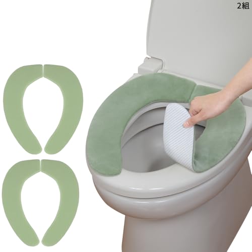 日本製の便座シート2組セット。40×9.5cm、厚さ9mmで、O型・U型・洗浄暖房型に対応。消臭機能、洗濯可能でズレずにピッタリ吸着。繰り返し使用でき、便座の汚れを防止します。(グリーン2)