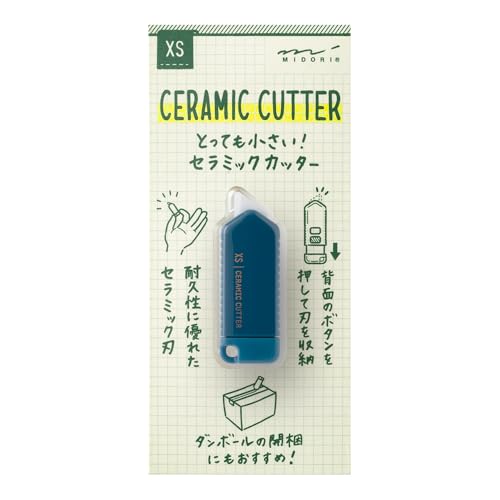 ミドリのダンボールカッターXS(セラミック製、色:紺)は、軽量で扱いやすいデザインが特徴です。刃が鋭く、ダンボールの切断がスムーズに行えます。コンパクトサイズで携帯にも便利。