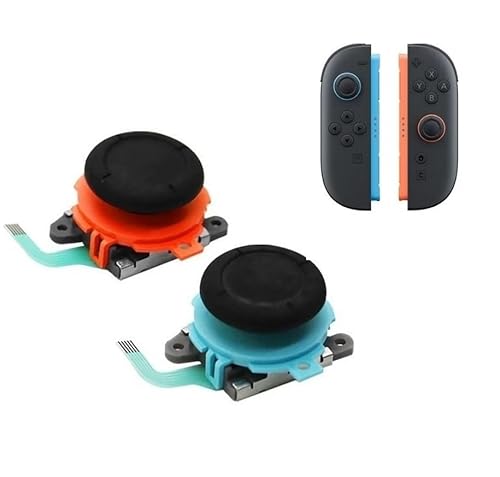 EC Supportの互換品Switch2対応Joy-Conコントローラー用3Dアナログスティック。赤と青の修理交換パーツ。高品質で、簡単な取り付けが可能です。