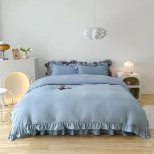 supisupi 布団カバー セット 4点セット ダブル ピーチスキン加工 掛け布団カバー 敷き布団カバー 枕カバー2枚 ボックスシーツ 女性 女の子 カラー A012- 和式用 無地・ブルー