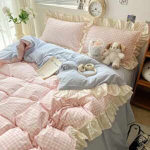 [Asisebom] 布団カバー 3点 4点 セット シングル 柔らか 可愛い フリル付き 優しい 肌触り 寝具 掛布団 おしゃれ 北欧 まくら 丸洗いOK 吸汗 速乾 和式 洋式 かわいい 四季通用 お洒落 寝具 寝室 新生活 一人暮らし (ピンク, シングル)