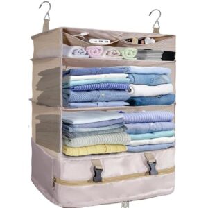【昇級版】トラベルポーチ 吊り下げ 圧縮 旅行 ポーチ トラベルポーチ 圧縮袋 防水 おしゃれ 取り外し可能 大容量 小さめ 圧縮バッグ 衣類 着替え 衣類ラック 大きい 出張 トラベルバッグ インナーバッグ 旅行用衣装ケース (ベージュ, X-Large)