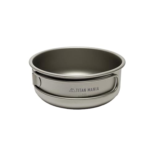 TITAN MANIA(チタンマニア)のクッカーは、400mlから1200mlまで全サイズがスタッキング可能。軽量で丈夫、直火使用可。折りたたみハンドル付きでコンパクトに収納。キャンプやアウトドアに最適。収納袋付き。