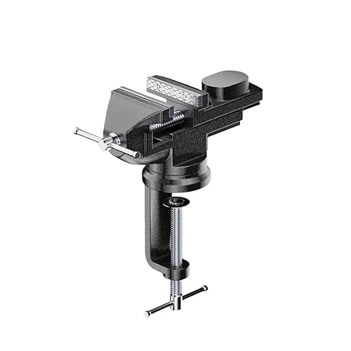 万力 回転式 リードバイスは、360°回転可能な小型卓上バイスです。鉄工や金工作業に最適で、滑り止めマットと手袋が付属します。作業台での固定や加工に便利です。