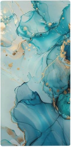 ブルーゴールドのテクスチャペイントが施された薄手のフェイスタオル。吸水性・速乾性に優れ、ふわふわで柔らかな肌触り。73x35cmの大判サイズで、家庭用やホテル、スポーツに最適な四季通用商品。