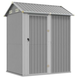 BNSPLY 物置 屋外 大型倉庫 高さ180cm アウトドア収納小屋 防錆防水 引き戸タイプ/2つ換気口/施錠可能/ 2800L大容量 床材補強フレーム付き ガーデン/庭/田畑/メタルシェッド 園芸用品/ツール/タイヤ 可動棚なし【 グレー】