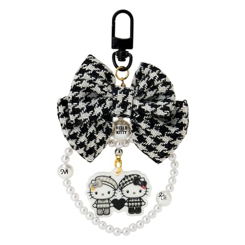 サンリオのモノクロガーリーふたごコーデキーホルダーは、ハローキティをデザインしたアイテム。可愛らしいモノクロスタイルで、バッグやポーチのアクセントに最適です。