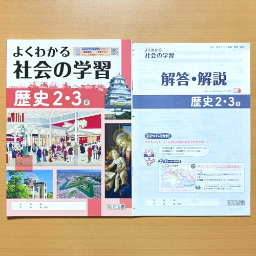 2024年度版「よくわかる社会の学習 歴史2.3年 東京書籍版【生徒用】解答・解説 付」明治図書。解答の表紙の右下に折れあり。本書は歴史の学習をサポートし、理解を深めるための解説が付いています。