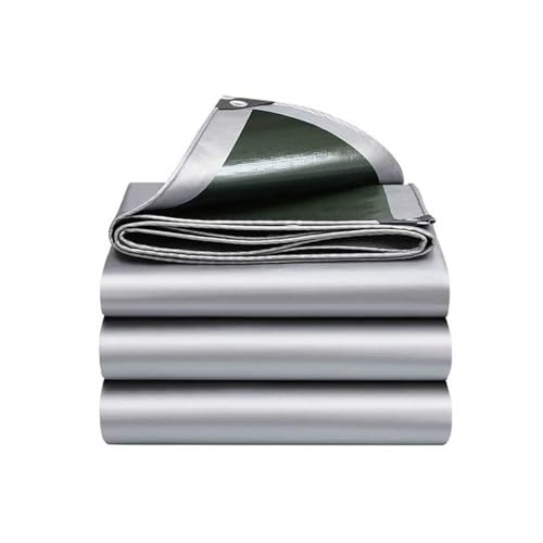 厚手の防水シート、屋外使用に最適。車や屋根、庭、バルコニーでの利用可。遮光・UVカット機能あり、台風や豪雨対策にも最適。キャンプや園芸、温室カバーとしても活躍。保温性や耐寒性、耐久性に優れた両面防水仕様(3*5m、銀緑)。
