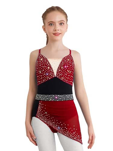 子供用の女の子向けにデザインされた、このグリッター入りのリリカルダンス用ドレスは、袖なしスタイルでフィギュアスケートにも最適です。鮮やかなブルゴーニュカラーが魅力的です。