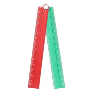 uxcell 折りたたみ定規 30cm アルミ合金製 多機能 角度ライン付き 長さと角度の測定用 メトリック 勉強 教室 建築設計 事務所用 赤 緑