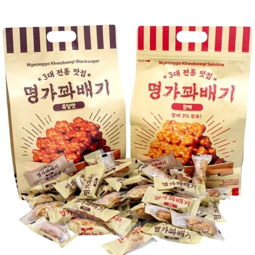 韓国伝統お菓子ミニクァベギは、ねじり揚げドーナツで、ゴマ味とブラウンシュガー味各500gがセット。韓国の名家が3代目のレシピで製造。お土産やスイーツに最適な一品です。
