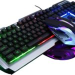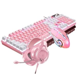 DancJulie ゲーミングキーボード&マウスセット。軽量、LEDバイト、4段階DPI調整、ブリージングライト、耐久性&静音設計(レインボーグローエディション)。