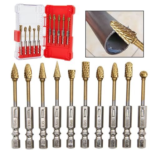 超硬合金バー10本セットは、タングステン合金製のリュータービットです。六角軸6.35mmタイプで、耐久性が高く、金属や木材の加工に最適です。精密な仕上げが可能で、プロフェッショナルにもおすすめの工具です。