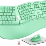 MEETION エルゴノミックキーボードは、スプリットカーブデザインとリストレスト付きで快適なタイピングを提供します。エルゴワイヤレスマウスも含まれ、Windows/Macに対応。