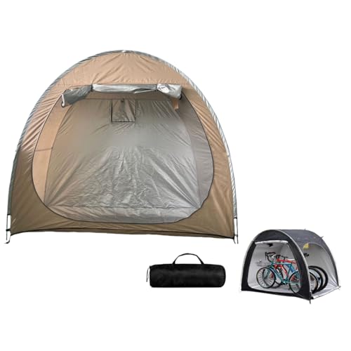 屋外用自転車置き場、サイクルハウス。2〜3台用のバイクガレージで、防水・防風・防塵・遮熱機能付き。大きいサイズA、カーキ色。自転車やバイクを守る頼れるテントです。